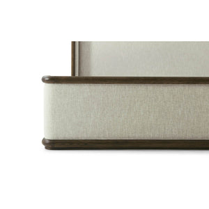Experience the perfect blend of elegance and comfort with our Modern Framed and Upholstered Bed. This US King size bed is designed to elevate your bedroom decor with its sleek and contemporary style. The smooth straight-grain exposed oak frame trim in a dark earth finish adds a touch of natural beauty and sophistication to any space.