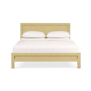 The tailored headboard and streamlined base emphasize proportion and restraint, allowing the organic texture to take center stage without ornamentation. Its monochromatic natural tone offers versatility across palettes, pairing effortlessly with crisp linens, layered neutrals, or soft tonal accents. Designed to balance simplicity with material depth, this bed frame delivers understated luxury and enduring style.