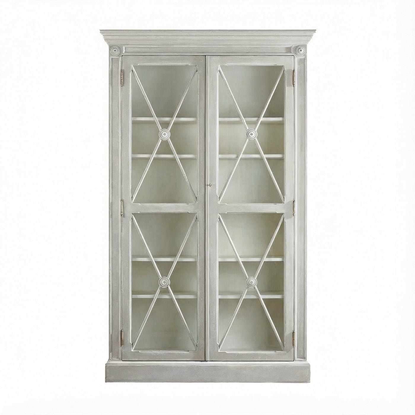 Inspired by the timeless elegance of Swedish neoclassicism, the Gustavian Display Cabinet exudes refined sophistication. Its hand-painted antique grey distressed finish lends an air of antiquity. Designed to showcase your most treasured collections, this bookcase features four adjustable shelves and a fixed middle shelf, offering ample space for curated displays. Whether placed in a grand dining room, an elegant library, or a distinguished living space, this cabinet seamlessly enhances its surroundings with understated luxury.
