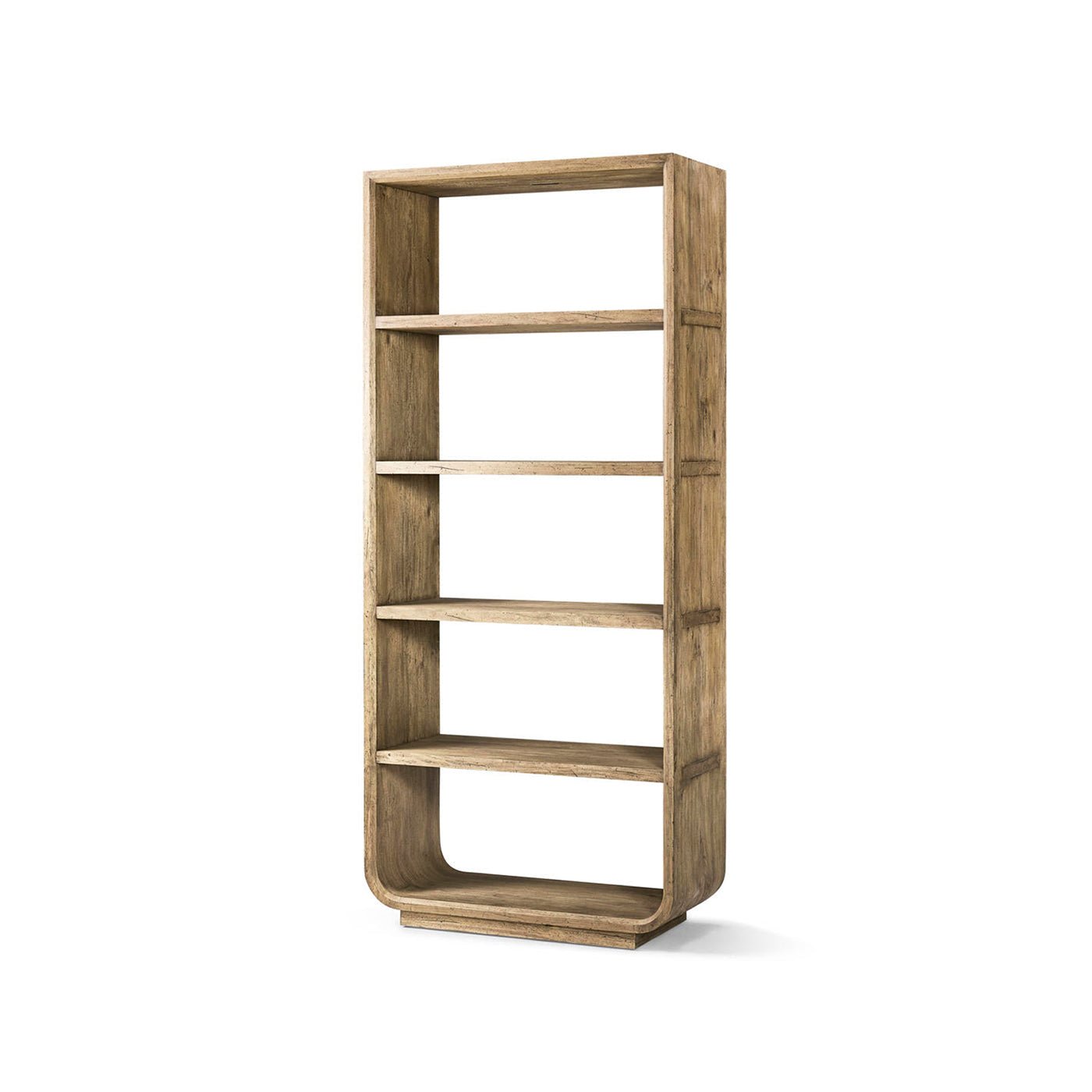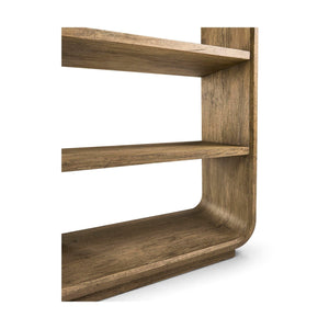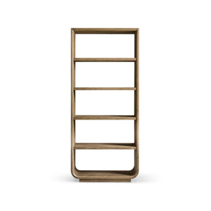 The Modern Wood Open Bookcase with Rounded Frame brings a sculptural touch to modern storage. Its tall shape and gently rounded corners give it a distinctive look. Made from warm-toned wood, the open frame and evenly spaced shelves keep the design light and let the wood grain stand out. With no backing panels or visible hardware, the bookcase has a clean, modern feel, and anything you display seems to float inside.