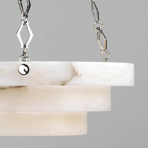 This light is understated in style. The Italian alabaster bowl pairs beautifully with the diamond-patterned chain.