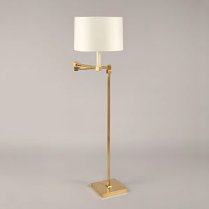 Classic Modern Brass Floor Lamp, defined by its strong, cube-shaped design and square base, this floor lamp has universal appeal. The adjustable arm has cubed joints, which mirror the square candle holder.