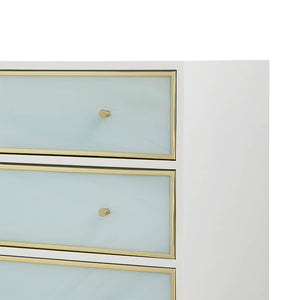 Introducing the Coastal Seaglass Nightstand – a stunning piece of furniture that will bring the charm of the sea right into your bedroom. Crafted with a white lacquer case and sea glass foam acrylic drawer fronts, this nightstand is perfect for those who love the calming hues of the ocean.