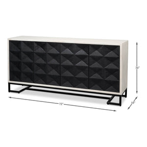 Meet the Contemporary Geometric Sideboard – where bold design meets practical storage. This statement piece features a striking geometric patterned facade, reminiscent of the classic styling of brutalism architecture, and offers a tactile and visual feast that instantly draws the eye.