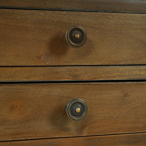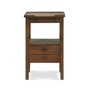 A pull-out shelf adds character and functionality. Made of solid mahogany with a pair of dovetailed drawers that create a lower shelf for an elegant display. The warm medium straw wash finish adds a sophisticated and serene touch that complements any decor style.