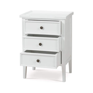 Enhance your living space with this Country Style Three Drawer End Table in White, designed to bring a touch of rustic charm to any room. This classic piece combines timeless design with practical functionality, making it a perfect addition to your home.