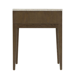 Dark Ash Modern Nightstand, A modern single drawer nightstand perfect for any bedroom. Seen here in clean-cut figured ash in our dark earth finish with a textured metal pull in Ember finish. Completed with a stone-like porous top in our exclusive Mineral finish.