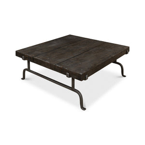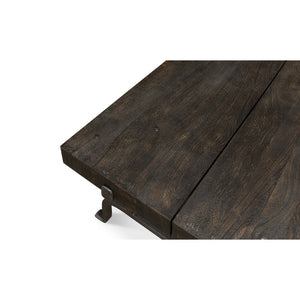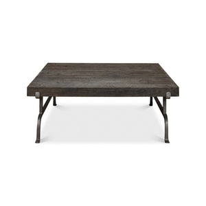Crafted with an artisanal blend of acacia wood and a substantial wrought iron base, the Dark Square Rustic Coffee Table exudes strength and character. The thick wooden top, finished in a deep brown stain, showcases the natural grain and texture of the acacia wood, adding warmth and depth to any living space. Designed for both durability and aesthetic appeal, the handcrafted metal frame provides a striking industrial contrast, emphasizing the raw, utilitarian beauty of this statement piece.