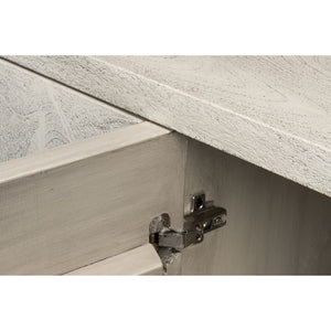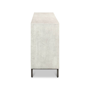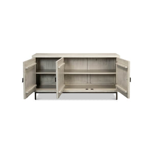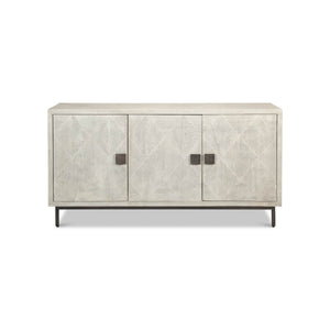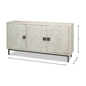 Diamond Inlay Modern Credenza -This striking piece features a light gray wash finish, giving it a refreshing and contemporary look that's right on-trend. The front panels are adorned with a subtle diamond pattern, offering a textured touch that's visually intriguing and delightfully tactile.