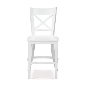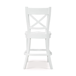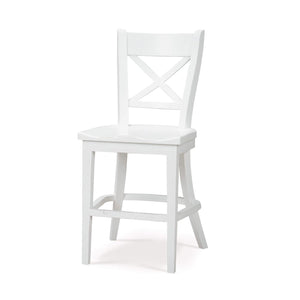 Introducing our French Provincial White Counter Stool, a perfect blend of traditional charm and modern functionality. This counter stool features a solid wooden frame with a lightly distressed architectural white painted finish, ensuring both durability and a timeless appeal. The backrest showcases an elegant cross-back design, adding a touch of classic French sophistication.