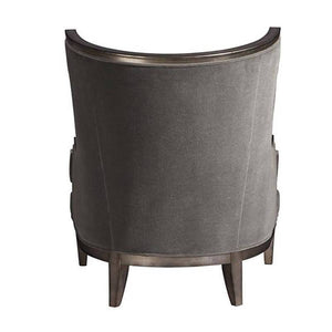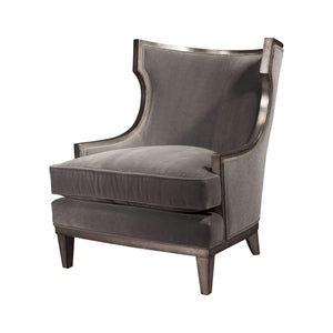 A Klismos inspired club chair, the upholstered, curved and framed 'wing' back and downswept arms enclosing a cushion seat, on a seat rail with square tapering legs. Inspired by an Art Deco original.