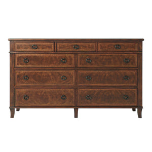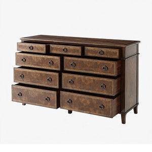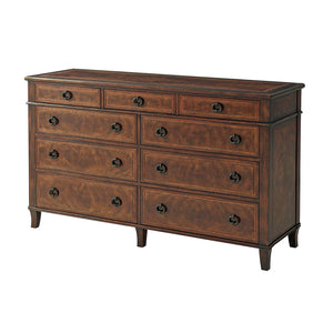 An Italian Neoclassic style mahogany dresser, the rectangular cross-banded top above three short frieze drawers and six further long graduated drawers, on splayed legs.