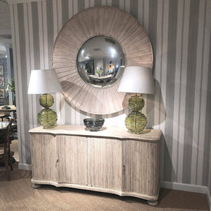 The Large Rustic Round Mirror is a striking fusion of traditional craftsmanship and contemporary elegance. Crafted from layers of washed acacia wood, its circular frame echoes the grandeur of an airplane engine, making it a bold yet sophisticated statement piece. The natural wood grain and artisanal layering create depth and texture, bringing warmth and character to any space.