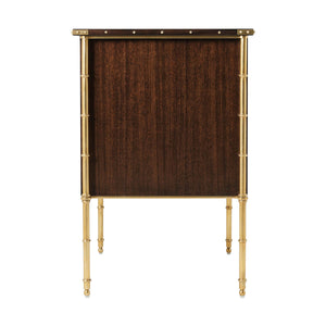 The nightstand, finished in a refined Cambridge tone, features two spacious drawers, providing both functionality and aesthetic appeal. Its exquisite detailing and campaign-style design make it more than just a piece of furniture, but a statement of luxury and refinement.