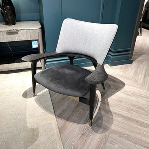 An improvement on the stylish Mod design with shapely legs that taper beneath the elegant frame and a floating seat. Gracefully curving into sculptural arms, a delicate balance is formed between distinguished metal accents and exquisite veneer.