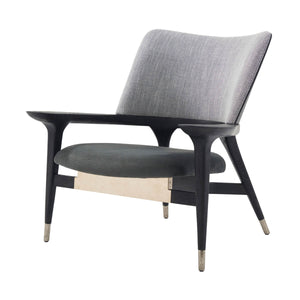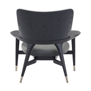 Mid Century Accent Chair - Charcoal, with dark charcoal finish on the comfortable curved barrel backrest. Upholstered cushions with brass details.