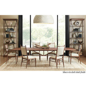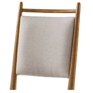 Mid Century style light oak dining chair in our dawn finish, with a padded back and seat upholstered in performance linen fabric adds comfort and sophistication to this timeless design. Raised on tapered legs joined by a supportive stretcher.
