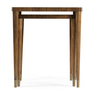 The set includes multiple tables that can be neatly stacked or arranged individually, offering versatile functionality for any room. Each table features elegant brass ferrules and hardware that have been acid-dipped and hand-rubbed to achieve a rich, natural patina, adding a touch of vintage charm. Perfectly blending style and practicality, this nest of tables is an exquisite addition to your sophisticated interior decor.