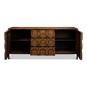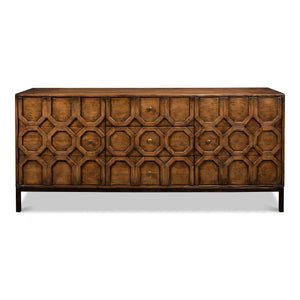 Introducing a piece of modern art for your living space - the Geometric Sideboard. With its striking applique design featuring a mesmerizing pattern of octagons, this sideboard is guaranteed to be the focal point of any room.