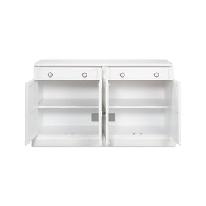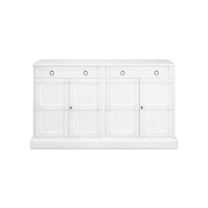 Modern White Painted Credenza -Dressed in Cortina white, it features a clean, linear silhouette that brings an airy spaciousness to any room. The paneled doors are framed by subtle accents.