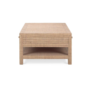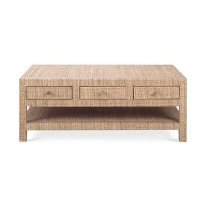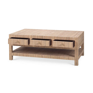 Upgrade your home with our Chic Natural Rattan Coffee Table. Wrapped in natural rattan, this stunning table combines modern design with coastal charm. It features three spacious drawers for all your storage needs and an open lower shelf perfect for displaying your favorite decor items.