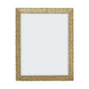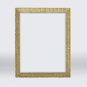 An organic modern gold leaf formed and molded rectangular wall mirror. This mirror can be hung horizontally or vertically. The gold leaf finish is applied to an aluminum cast frame.