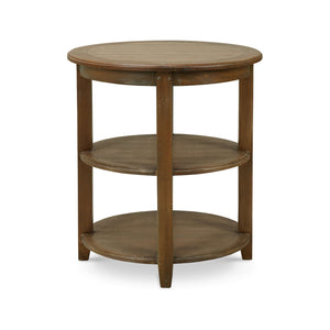 Introducing our Rustic Round End Table, a perfect blend of rustic charm and practical functionality. This round end table features a wooden frame finished in a warm, inviting straw wash, providing both durability and a timeless appeal. The table's three-tier design, offers ample space for storage and display of your favorite decorative items, books, or essentials.