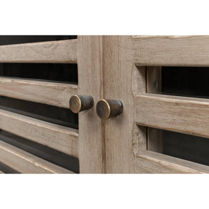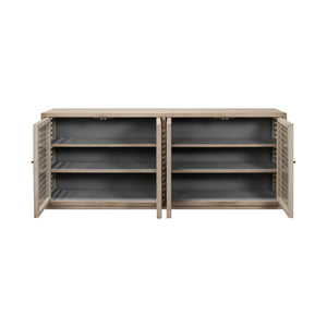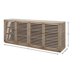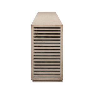 Seaside Gray Wash Sideboard, the quintessence of coastal sophistication merged with functional design. This sideboard's charming slatted doors are reminiscent of seaside cottages, instantly infusing your space with a relaxed, airy vibe. Finished in a soothing gray wash tone that is slightly distressed reclaimed pine, it complements any color palette with ease and grace.