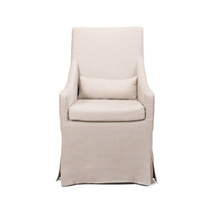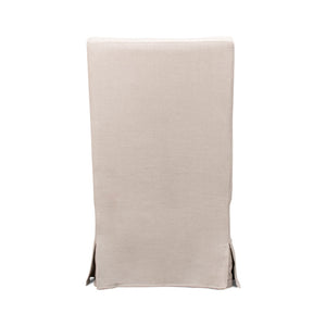 Skirted Linen Dining Chair, elevate your living space with this sophisticated piece that seamlessly blends comfort with chic style. Crafted with a durable, sturdy frame, it's draped in a luxurious beige linen fabric.