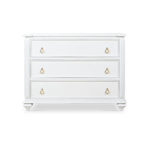 With three spacious drawers, each adorned with gold ring pulls, providing ample storage for your clothing, accessories, or household essentials. Raised on short tapered legs, the classic design makes this dresser a versatile addition to any room, whether it’s your bedroom, living room, or hallway.