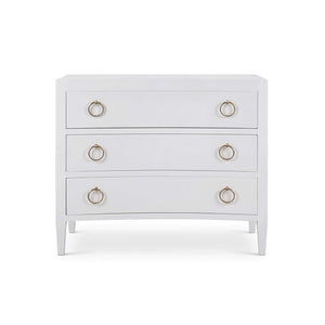 The subtle texture of the linen finish enhances its modern appeal, while the three spacious drawers provide ample storage for your essentials. Adorned with chic gold ring pulls, this chest effortlessly combines functionality with refined elegance, making it a standout piece in any room.