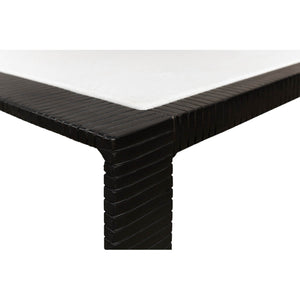 The epitome of contemporary elegance: our Modern Marble Top Iron Coffee Table. With a sleek black iron frame, featuring a captivating ridged design, this piece exudes sophistication and style. The white marble top, inset flawlessly into the frame, provides a stunning contrast and a luxurious touch.