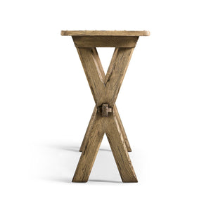 The Faded Oak Narrow Solid Wood Console Table brings refined rustic character to tight spaces, offering a warm, understated presence ideal for entryways and hallways. Crafted from solid wood and finished in a beautifully distressed, faded oak tone, it captures the inviting charm of timeworn craftsmanship while maintaining a clean, streamlined silhouette.