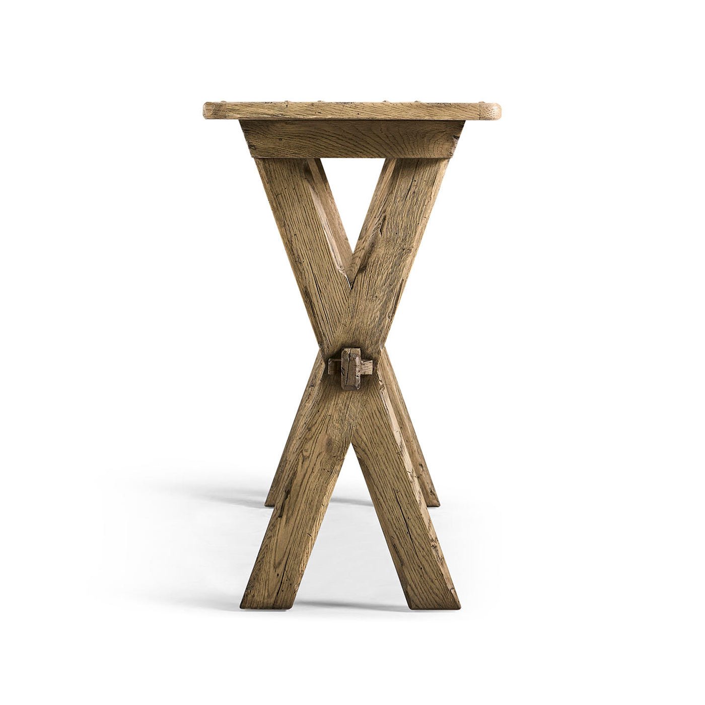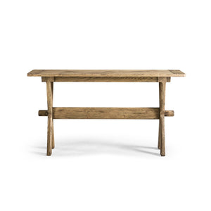 Its 18-inch narrow profile is thoughtfully designed for practical placement without sacrificing visual impact. The trestle-style base adds architectural interest, while the elongated top provides the perfect surface for decorative accents, everyday essentials, or layered styling in transitional and modern homes alike.