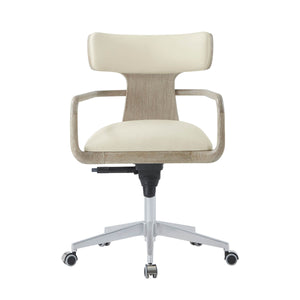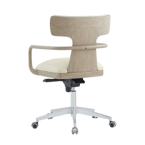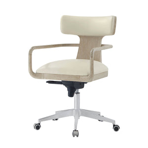 Organic Modern Desk Chair, with natural wood bent arms curved and flowing from around the back and gracefully merging into the base as if it were one solid piece. The adjustable height and swivel chair is completed with a firmly upholstered seat and sturdy base with durable casters for easy maneuverability, it is the perfect complement to your home workspace or office.