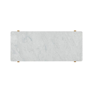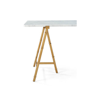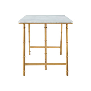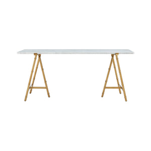 Mid Century Marble Top Writing Table, slender lines form a light and airy design in this modern table. A graceful combination of white bianco marble atop an organic faux bois base in a satin bronze finish.