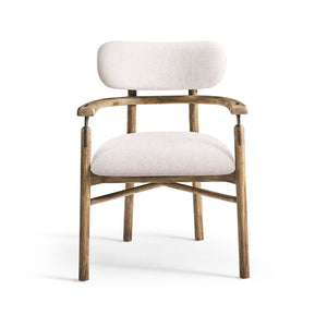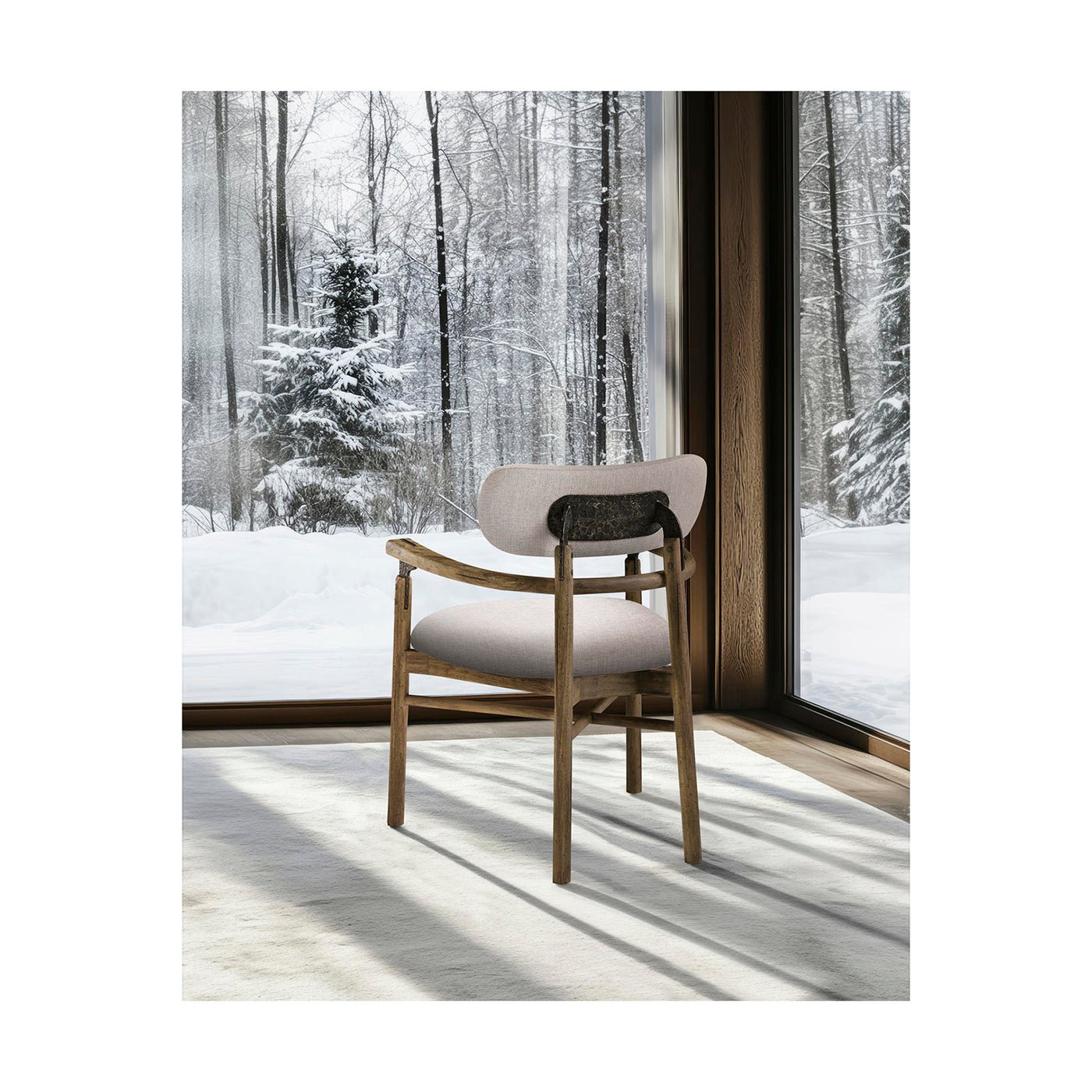 The Modern Rustic Upholstered Armchair brings together Scandinavian-inspired simplicity and the warmth of natural materials. Made from solid wood with a light, natural finish, its clean lines and gently rounded shape show off the wood’s grain and create a calm, stylish look for your table.