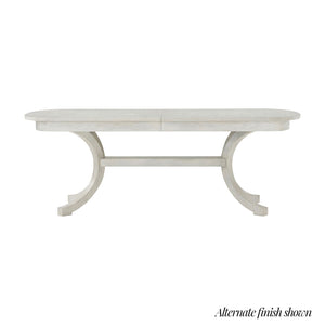 Two 18-inch leaves allow the table to extend up to 120 inches, providing ample space for gatherings both intimate and grand. A gently rounded top adds softness to the clean silhouette, while the warm finish highlights the oak's natural grain with subtle warmth and texture. Perfect for airy interiors and timeless dining spaces.