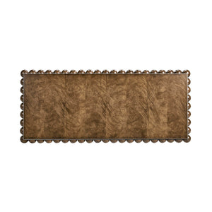 The faux bone inlay creates a subtle visual contrast against the medium brown mahogany, elevating the table's overall appearance. Immerse yourself in the playful side of modern design and transform every meal into an experience.