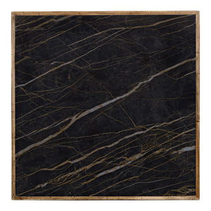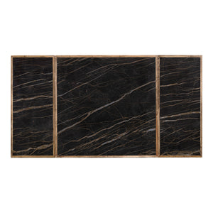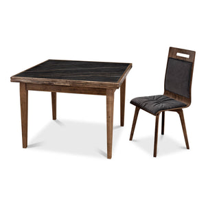 This unique table has a marbleized porcelain inset to each top section and comfortably seats 6 to 8 people. With a beautiful dark wood finish to complement the marbleized top.