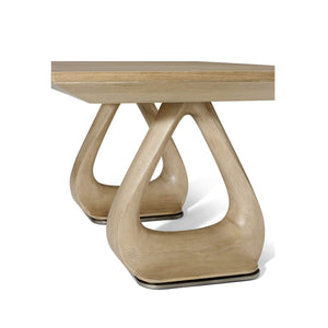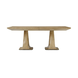 Elevate your dining experience with the elegance of our Organic Modern Oak Extending Dining Table. Masterfully crafted from oak, and finished in light blonde finish, this table showcases the natural beauty of the wood through its gentle, soft lines and a knife-edge top, creating a sophisticated and inviting atmosphere.