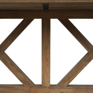 Rustic 84-Inch Reclaimed Teak Dining Table - Elevate your dining experience with this exquisite 84-inch dining table crafted from reclaimed teak wood and finished in Teak Straw Wash. Featuring a robust and rustic design, this table is perfect for adding a touch of natural elegance to any dining space.