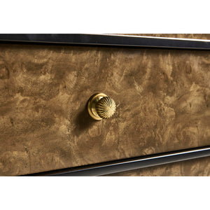 Art Deco Style Burl Wood Dresser, a striking design with blended elements from the Art Deco and Mid-Century modern styles. Clean lines, bold contrasts, and minimalist elements make this a statement piece that seamlessly blends with contemporary interiors.