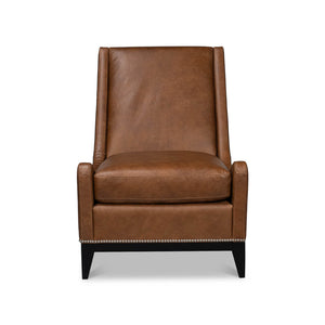 The Cognac Leather Accent Chair perfectly fuses traditional charm and modern comfort. Crafted with meticulous attention to detail, this chair features a supple top-grain leather that beckons you to sit and unwind. The warm, rich chocolate brown cognac hue of the leather is beautifully complemented by the classic nailhead trim, exuding a sense of luxury and sophistication that elevates any living space.