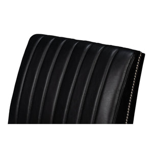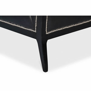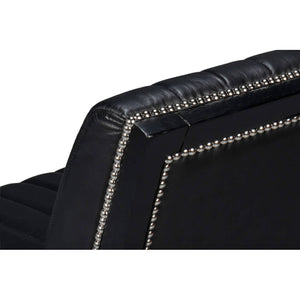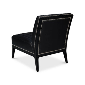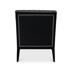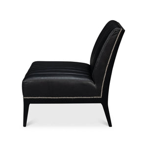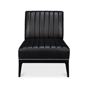 The Onyx black leather channel tufted chair with a sleek ebonized mid-century frame and nickel nailhead details.
