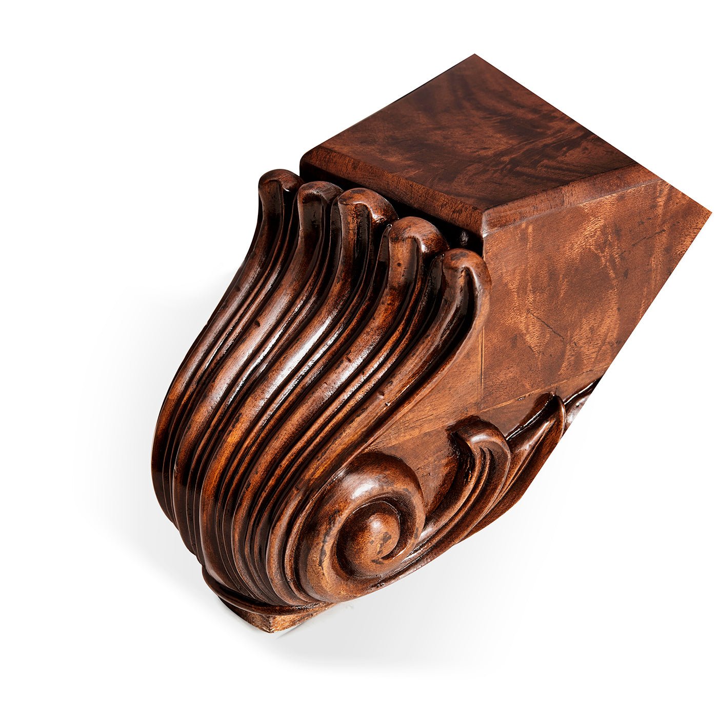 The table stands on a fluted central pedestal with carved details and a four-part base featuring scrolling acanthus feet, inspired by classical Greco-Roman design. This sturdy base adds both style and stability. The table works well in a library, study, or games room, and can also serve as a center table when not in use, showing the Regency preference for versatile elegance.