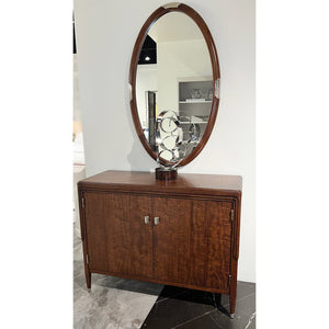 The Walnut Art Deco Oval Mirror beautifully embodies early 1900s design ideals with its clean lines and elegant, rounded shape. Framed in exquisite figured walnut with a molded edge, this mirror showcases timeless craftsmanship and understated sophistication. Its refined silhouette enhances any interior, from classic to contemporary spaces.