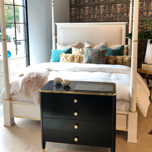 Featuring four spacious soft-close drawers, this nightstand offers a perfect blend of functionality and elegance, ensuring smooth and quiet operation. Whether used as a statement piece in your bedroom or as a chic accent in your living space, this nightstand enhances your decor with its timeless charm and artisanal craftsmanship.