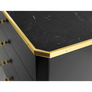 Elevate your interior with the refined elegance of the Black Mid Century Nightstand. Inspired by French mid-century modern design, this sophisticated piece combines timeless style with practical features. Its sleek black lacquer finish is complemented by a luxurious marble top and adorned with brass accents and hardware, creating a striking contrast that exudes opulence.