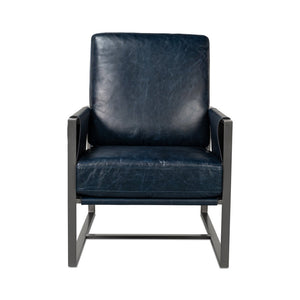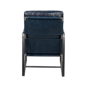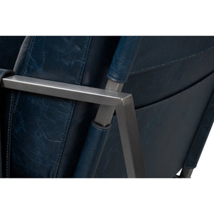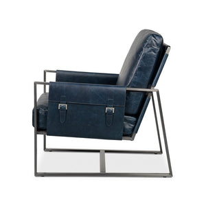 The Blue Leather Sling Accent Chair offers a perfect blend of style and practicality, making it an ideal addition to modern interiors. Upholstered in rich, top-grain Chateau Blue leather, this chair boasts a sleek industrial metal frame for a contemporary aesthetic. The unique sling armrests are complemented by leather side buckles, adding both character and charm.